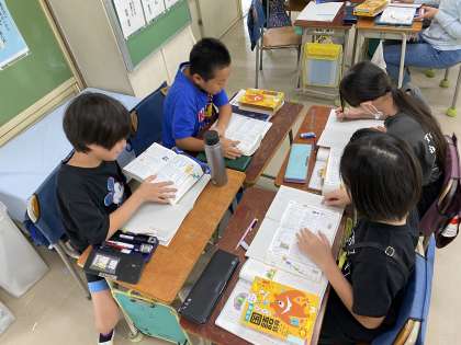 漢字辞典を使い、同じ読み方をする漢字を調べる学習を行いました。友達が調べた言葉を聞くと、「そんな言葉もあるんだ!」と驚く姿も見られました。