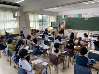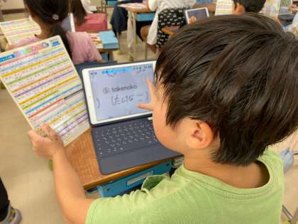 ローマ字表を見ながら、読み方や書き方を練習しています。
