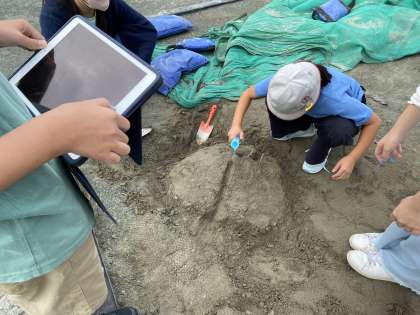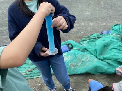 チョークの粉を水に溶かし、水の流れと役割を視覚的に観察しました。