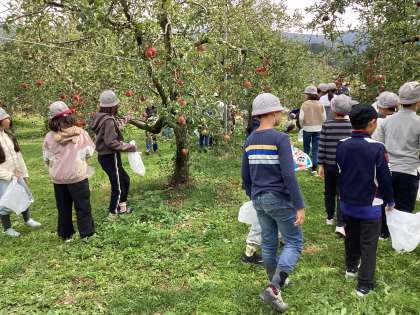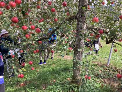 村めぐりから、りんご狩りの様子です。