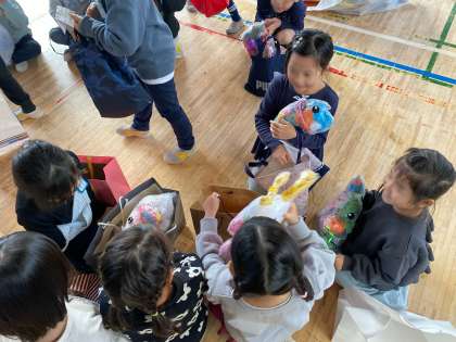 自分たちの作品を片付けています。愛おしそうに抱いている姿が素敵でした!