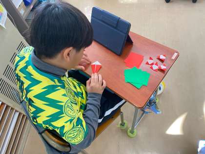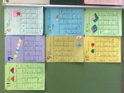 毎月初めにクラスへ配布される給食献立表に、けやき学級が飾り付けをしてくれています。季節にあった飾り付けがとても綺麗です。