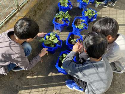 自分たちで種から育てた二十日大根を収穫しました。とても美しい赤色です!