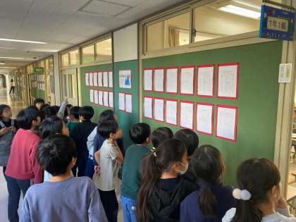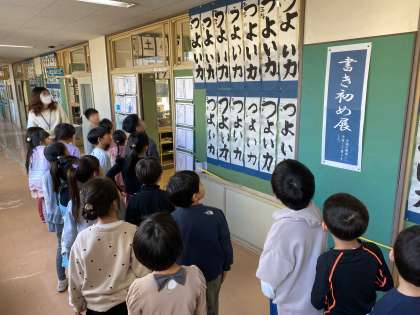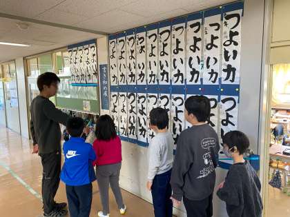それぞれのクラスでしっかりと時間を取り、筆の運び方やはらい方を見て学びました。