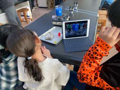 示温インクを使い、温まった水がどのように動くのかを観察しました。