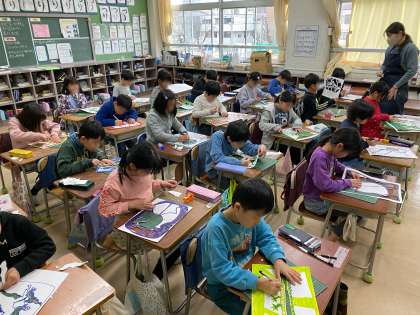 2/4(火) 3年生 図工 「えのぐでとんとん」
