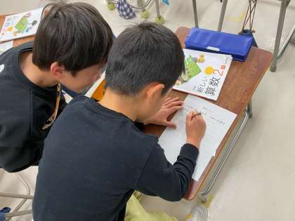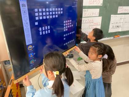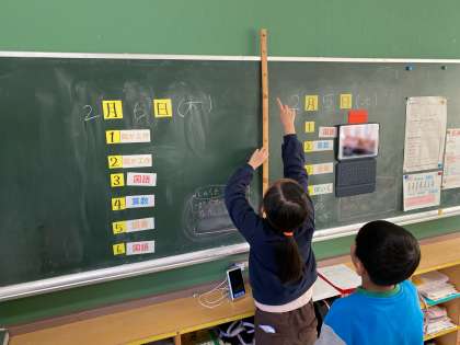 1mものさしを使い、教室の中にある1mの長さのものを探しました。