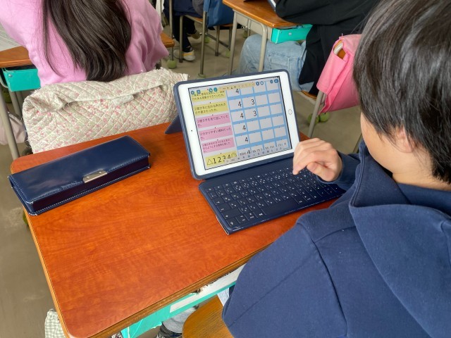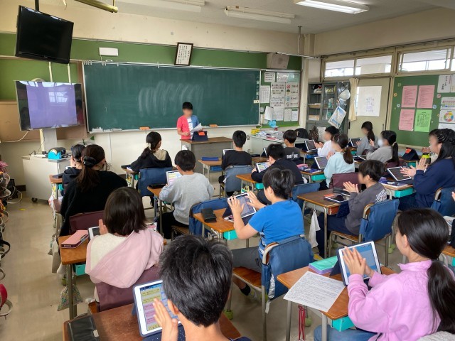 防災学習で学んだ中で、避難場所で過ごす前に練習としてやっておくべき事柄について発表しています。また発表をしている姿や内容について、お互いに評価をしています。
