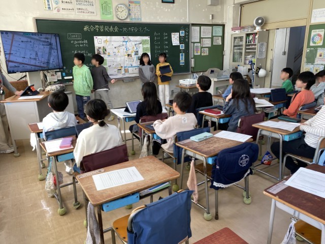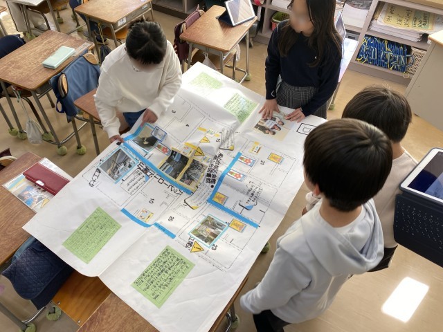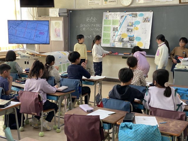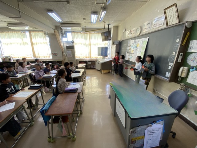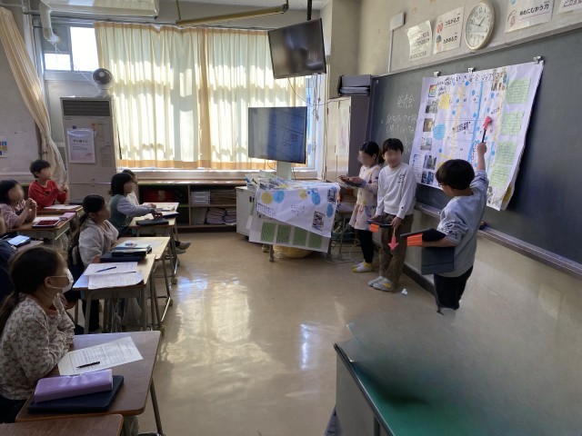 フィールドワークで調べたことをまとめて発表しました。「落書きがあったのでので人の目が届きにくく、危ないと思いました。」など、考えの根拠を示しながら発表することができました。