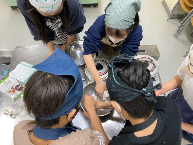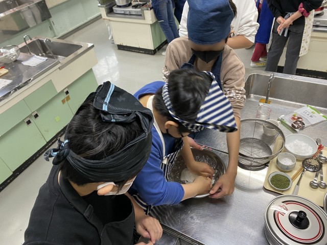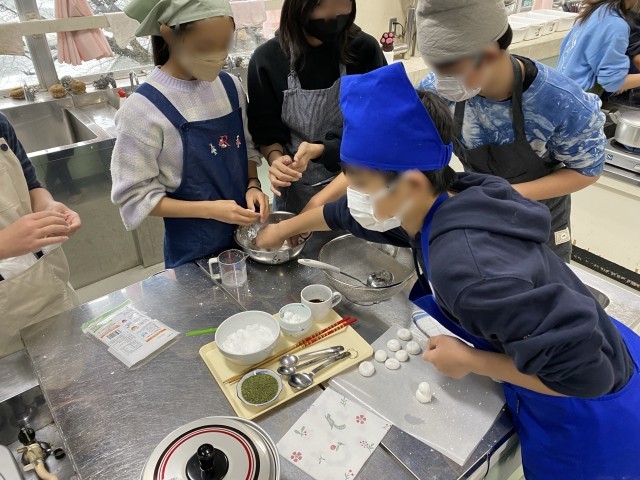 白玉団子を作りました。なかなか形にならなかったり、面白い形を作ったりと、とても楽しく実習を行いました。