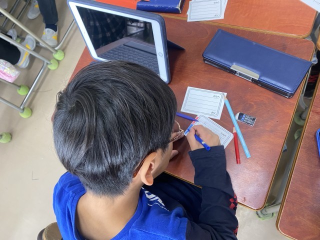 6年生を送る会にむけて、全学年が一生懸命に練習を重ねていました。また6年生に送るメッセージカードも、心を込めて書きました。