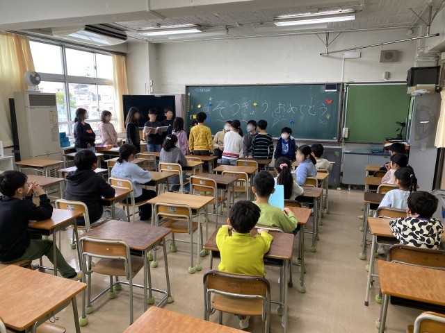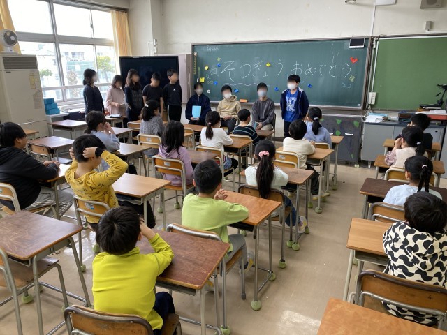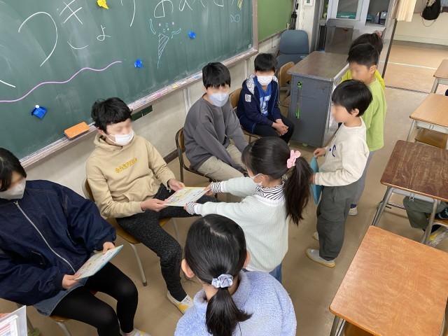 6年生を送る会の後、たてわり班で集まり、6年生に感謝の言葉とメッセージカードを送りました。