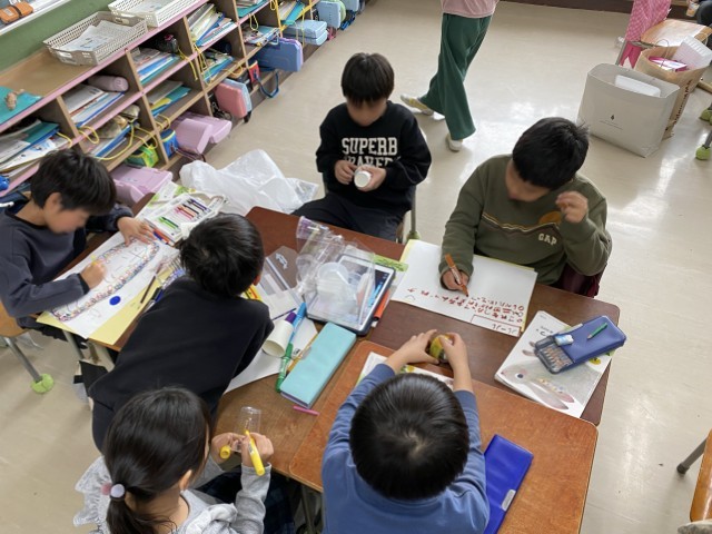 1年生を招待して一緒に遊ぶ計画をたて、様々なゲームを用意しています。また皆が楽しめるようにルールなどを工夫しています。