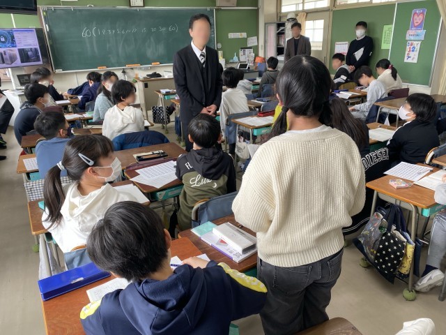 他県より授業参観に来られました。「素数が自分たちの生活にどう活用されているのか」というお話をしていただき、自分たちが学んでいることが実は生活に密接に関わっていることに驚いた様子でした。