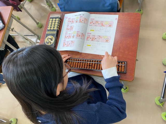 そろばんを使って計算をしました。珠を動かすこと自体に苦戦する姿が見られましたが、慣れてくると計算のスピードが上がりました!