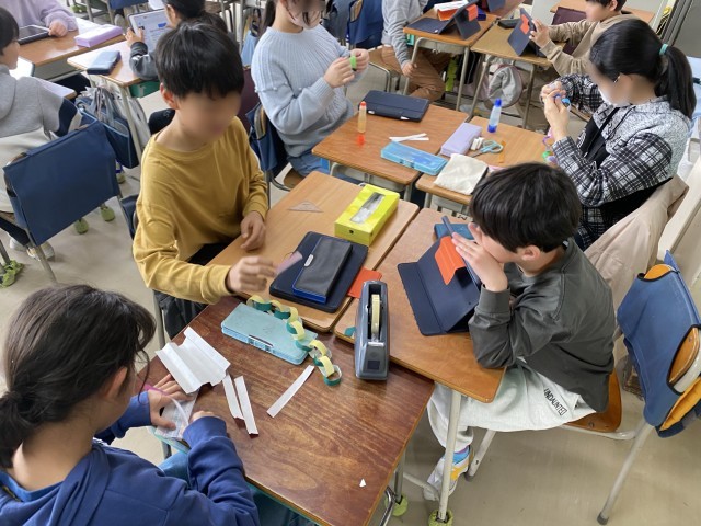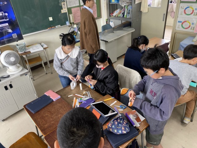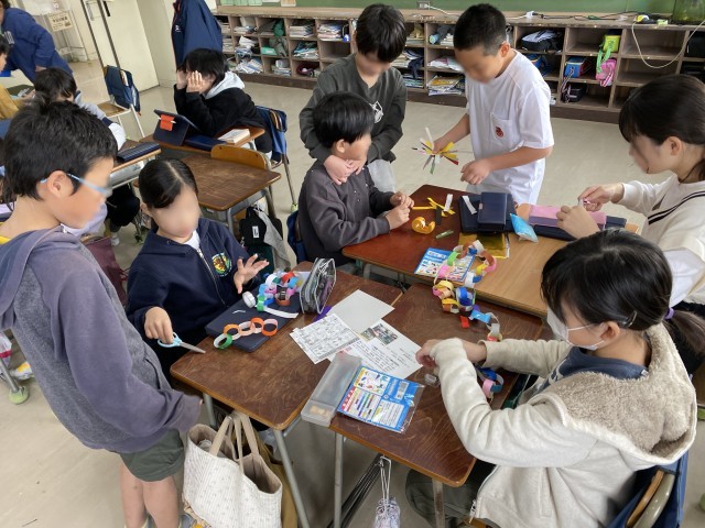 来年度入学する一年生を迎えるため、飾りを作っています。