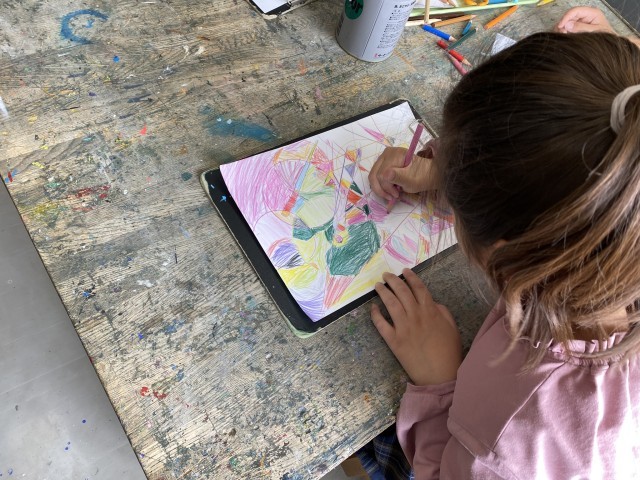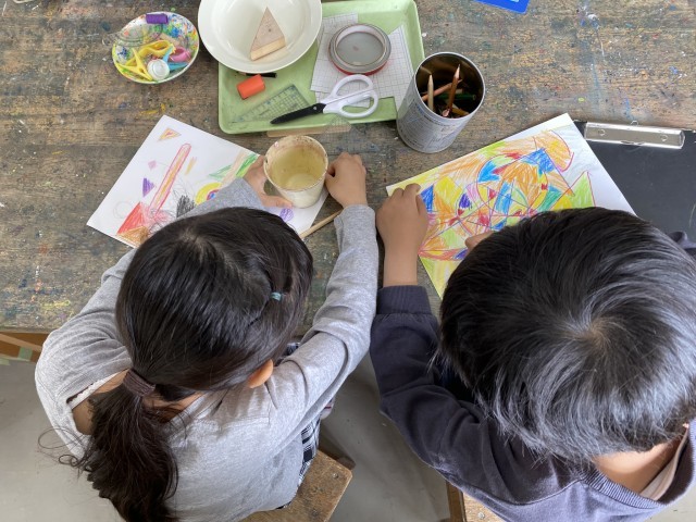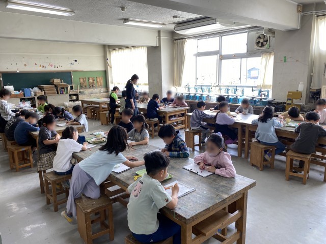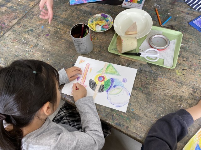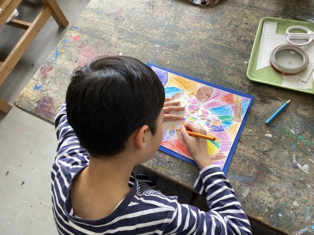 4/18 (金) 3年生 図工 「線と線が集まって」