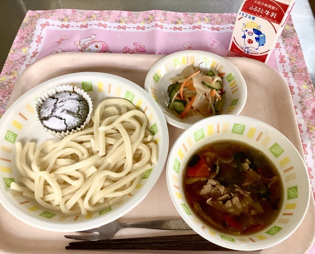 今日は、八十八夜です。八十八夜とは、立春から数えて88日目にあたり、お茶の産地では新茶の茶摘みが始まります。給食室では、八十八夜の茶摘みにちなんで、生地に抹茶を練り込み、米粉の抹茶ケーキを焼きました。