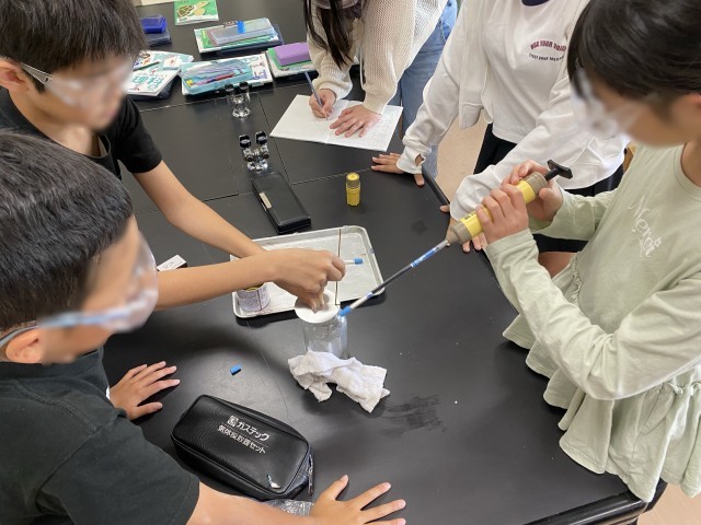 空気を燃やした後の二酸化炭素や酸素の変化について調べました。