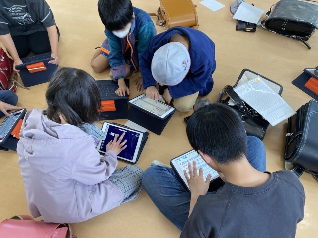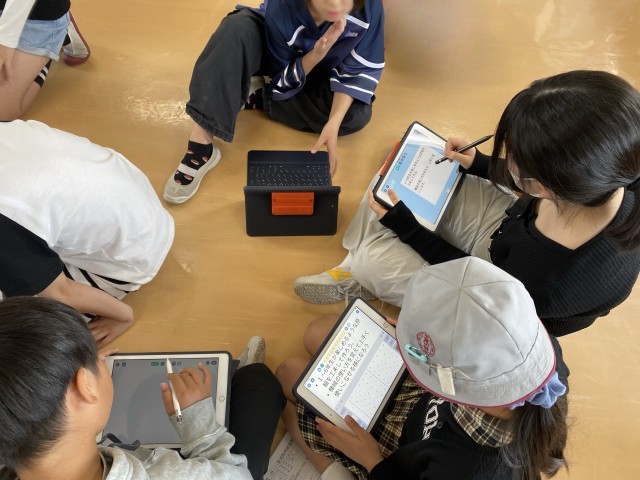 放送委員会では、子どもたちが自主的に仕事の内容を教え合い、放送する内容を考えています。