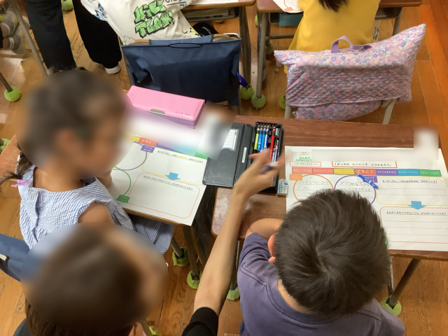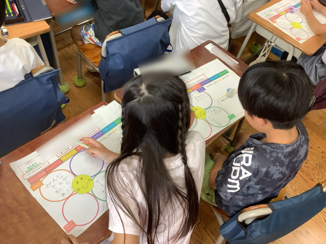 「みんなでえがおになろう」という学年目標をもとに、1学期に笑顔になれたことを振り返りました。