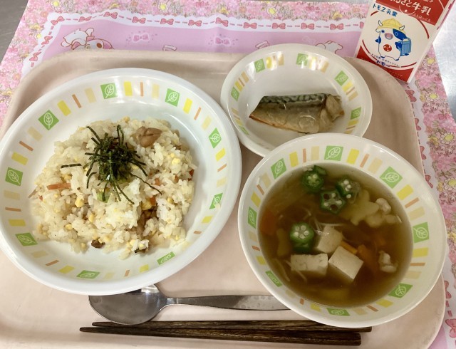 今日は、五節句の一つである【七夕】です。給食では、夜空に浮かぶ天の川をイメージして、七夕汁を作りました。七夕汁には、天の川に見立てたそうめん、短冊の形に切ったにんじんと大根、星の形をしたかまぼことオクラを入れました。