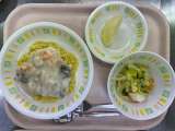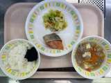 今日の給食は、ごはん、のりの佃煮、鮭の塩焼き、即席漬、豆腐汁です。 1月24日〜...