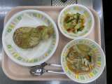 今日の給食は、あげパン(うぐいす)、肉団子スープ、海藻サラダ、牛乳です。 〈...