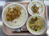 今日の給食は、中華おこわ、魚の立田あげ、中華スープ、おかしな目玉焼き、牛乳です。...