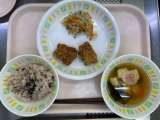 今日の給食は、赤飯、鶏のからあげ、野菜のおかかあえ、お祝いすまし汁、牛乳です。5...