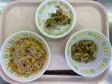 今日の給食は、麻婆豆腐丼、中華サラダ、卵とわかめのスープ、牛乳です。 〈今日...