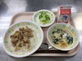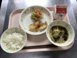 今日の給食は、ごはん かつおでんぶ 牛乳 西湖豆腐 春雨サラダ