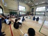 5年生が南中ソーラン節に向けて準備をしている様子です。今日は本番と同じように半被...