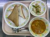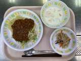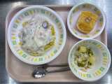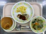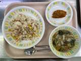 今日の給食は、ナシゴレン、サテ、春雨スープ、牛乳です。 オリパラ給食「マレーシア...