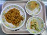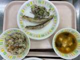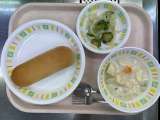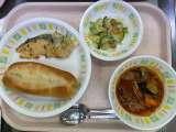 今日の給食は、ソフトフランスパン、魚のガーリック焼き、ラタトゥイユ、ひよこ豆フレ...