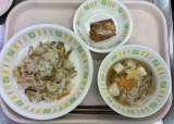 今日の給食は、 三色丼、磯香和え、けんちん汁、牛乳です。 〈今日の食材産地...