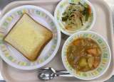 今日の給食は、 チーズトースト、ビーンズシチュー、海藻サラダ、牛乳です。 ...