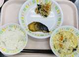 今日の給食は、 ごはん、さばの一味焼き、おひたし、かきたま汁、牛乳です。 ...