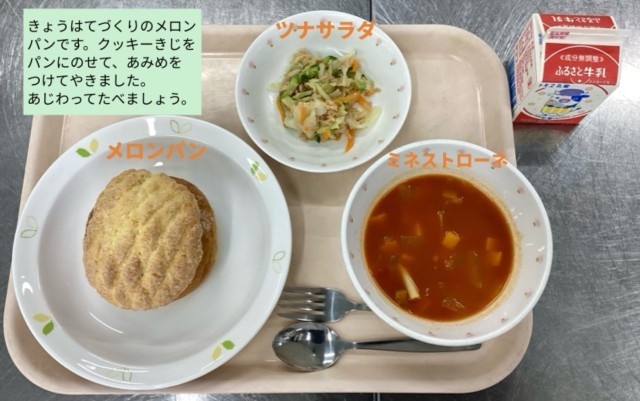 今日は手作りのメロンパンです。バターや小麦粉を合わせて作ったクッキー生地をパンにのせて、
