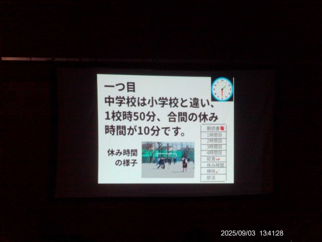 今日は、和みの学び舎の奥沢中学校で、6年生が東玉川小学校の6年生と一緒に、中学校体験をさせていただきました。生徒会の皆さんから小学校と中学校の違いや、どんな部活動があるかを教えていただきました。6年生各自が選んだ教科の授業も受けさせていただきました。中学生の皆さんも授業補助をしてくれました。素敵な先輩たちの姿に、中学進学へのイメージと希望がもてたのではないかと思います。奥沢中学校の皆様、ありがとうございました。
