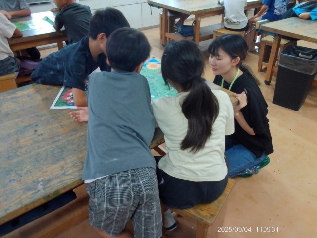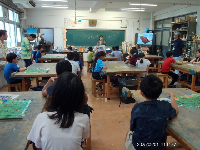 今日は世田谷美術館から講師の方々にお越しいただき、4年生が美術鑑賞教室の授業を受けました。講師の方のご指導の下、アーティストの方の作品を見て意見を交換しました。作品の中の生き物や植物について実物の様子とは大きくかけ離れている理由についても考えました。そして、講師の方から、作者は「私にはこう見えている」という言葉を残していると聞き、心を揺さぶられている児童もいました。最後は大きな模造紙に、みんなで自分の好きなものを自由に描きました。「自由が難しい」という児童もいましたが、みんなそれぞれに思い思いの絵を描くことができました。4年生は、今月末にはいよいよ世田谷美術館に行き、様々な作品を鑑賞する予定です。楽しみですね。