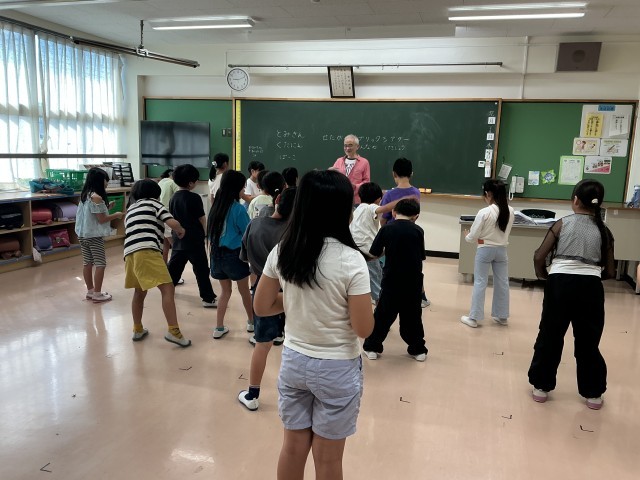 2日目は数人のグループで日本語の教科書にも載っている「一本道を歩いていたら」というお話を表現する活動を行いました。「一本道を歩いていたら。奥沢小学校の2年生だと思ったら、〇〇だった!」というシーンに合わせて各グループで〇〇にところを話し合って決め、表現しました。宇宙人になったり、動物になったりと、自由な発想で生き生きと活動する様子が見られました。