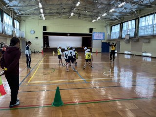 講話の後には、インクルーシブサッカーを体験しました。声を出さずに足音やジェスチャー、アイコンタクトを使って仲間と連携を取ることの難しさや大切さを感じながら、子どもたちは真剣に、そして楽しみながら取り組みました。言葉だけに頼らず相手を思いやることの重要性を学ぶ、貴重な時間となりました。