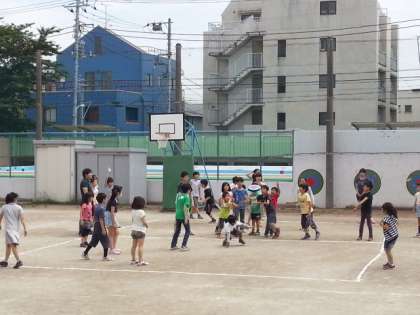 給食の後は、そのまま縦割り班で遊びました。学年を越えて、奥沢小の輪が広がっています。