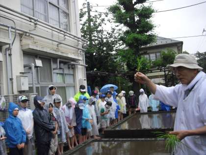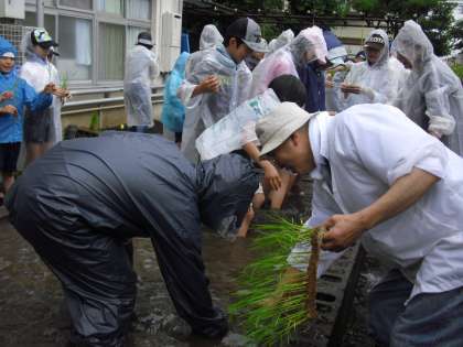 地域や保護者の方のご協力を得て、田植えを行いました。