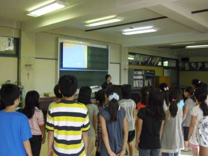 放課後、東玉川小学校の合唱団を迎えて、合同練習を行いました。