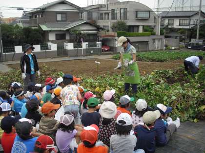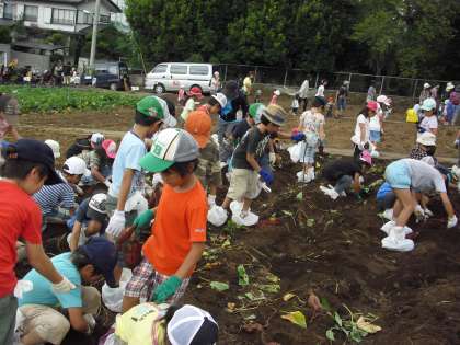 大人がつるをよけて、掘る準備をしましたが、子どもたちは待ちきれない様子で、一生懸命いも掘りをしていました。