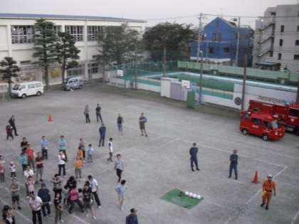 本校を会場に、奥沢・東玉川地区区民防災会議主催の防災訓練(避難所体験)が行われています。