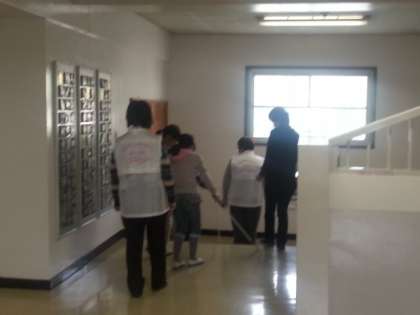 奥沢地区社会福祉協議会のみなさんにご協力いただき、4年生がブラインドウォークを行いました。アイマスクをして白杖を使って歩くことは初めて体験で、すべての子どもが真剣に取り組んでいました。隣で介助する児童も、あたたかく声をかけており、次第に信頼関係が築かれていくことを感じました。