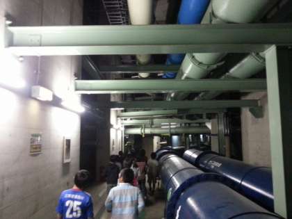地下の設備を見ながら、水の再生について、詳しい説明をいただきました。水がきれいになるには、微生物の働きが大切であることを知って、みんなびっくりしました。